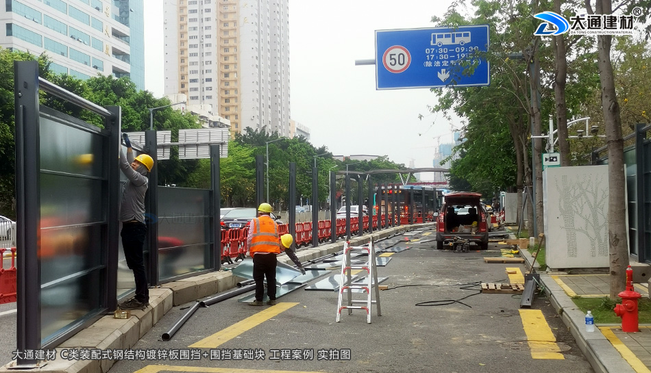 深圳市羅湖區(qū)黃貝街道項(xiàng)目工程使用的是深圳市大通建材提供的C類(lèi)鍍鋅鋼結(jié)構(gòu)圍擋+圍擋基礎(chǔ)塊,由大通建材公司專(zhuān)業(yè)團(tuán)隊(duì)生產(chǎn)-銷(xiāo)售-配送-安裝等服務(wù)