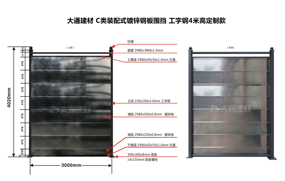 了解更多關于“大通建材 C類鋼結構鍍鋅鋼圍擋”生產定制、配送安裝、零售批發的價格及規格等詳情,請致電13826562448梁先生