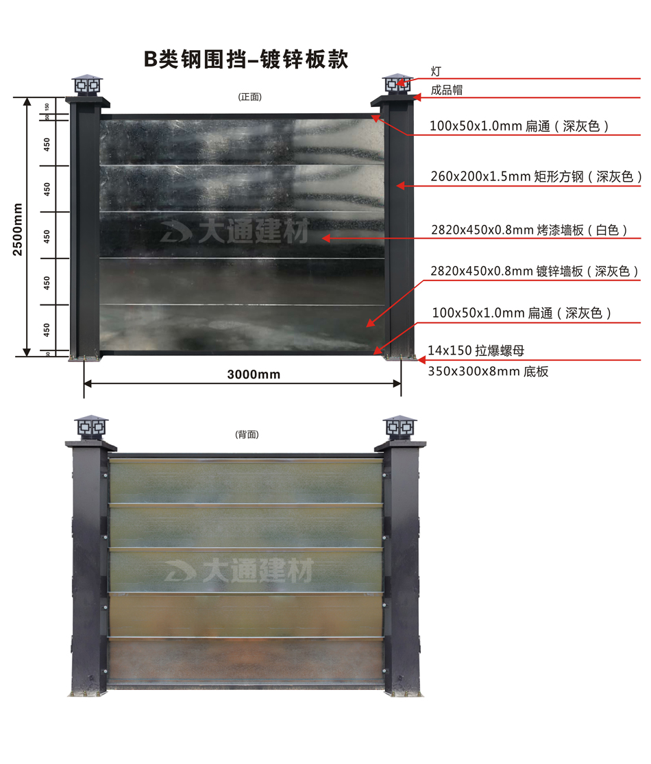深圳市大通建材有限公司是一家專業的B類鋼圍擋生產廠家,施工B類鋼圍擋廠家直銷,批發價格低、美觀大氣、穩固耐用;適用于市政建設施工、房地產項目施工、地鐵項目施工、管網改造等工程;深圳市大通建材有限公司有著與中國中鐵、中國鐵建、中國建筑、中國電建、中國華西、中國中冶、深圳市政公司、深圳路橋集團等單位建立著友好的合作關系,為深圳很多項目施工提供圍擋供貨及安裝。