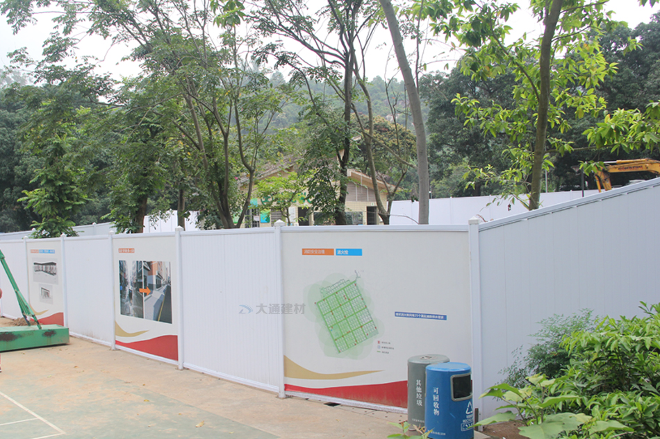 深圳市大通建材PVC圍擋在符合市政要求的同時不僅有良好的防護能力,還美觀環保、安全穩固、經久耐用。在使用中有較好的防護能力,而且排水不良會降低其使用壽命,可以反復循環使用。